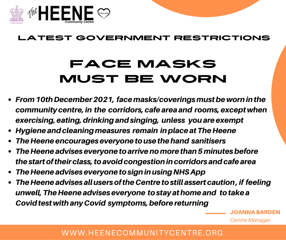 Stay Safe in ClassJaneJan 14, 20221 min readJust to let you know about the current requirements asked by Heene Community centre for attending the centre. Thank you and look forward to seeing you at class.